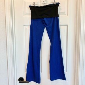 Express Cobalt Blue Black Marled Foldover Wide Waistband Bootcut Yoga Pants