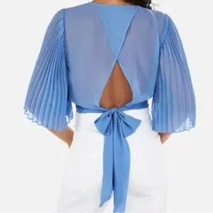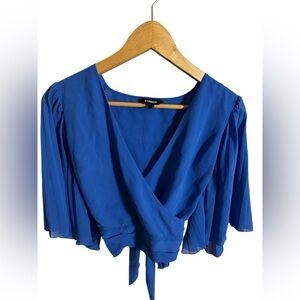 Express Cobalt Blue Cropped Chiffon Sleeves Size S