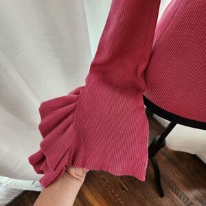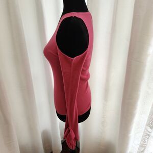 Express Cold Open Shoulder Ribbed Flutter Sleeve Sweater Pink Womens Medium NEW
