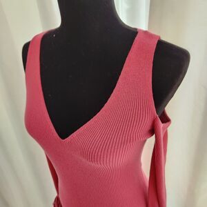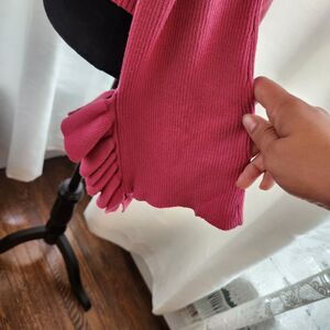 New Express Cold Shoulder Flutter Sleeve Sweater. Pink colorway. Ribbed knit material. Stretchy and soft.
