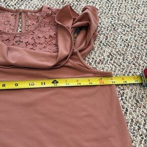 Express Cold Shoulder Blouse with Lace Insert in Light Mauve. Small