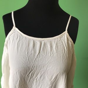 Express Cold Shoulder Top. Beautiful off white top in size small. Spaghetti shoulder straps and ruching running down both sleeves. Great condition!