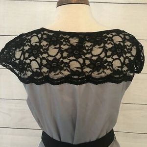 Express Color Block Dress NWT 30" long from scoop neck to hem. 18" from armpit to armpit. Front is a ivory, back is silver/grey. Rich, silky feel & fully lined.