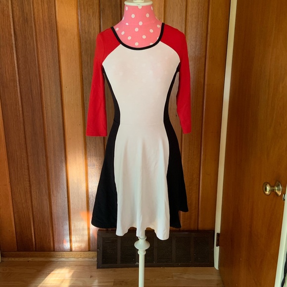 Color block Express dress. Colors are white, red, and black. Worn only once, in amazing condition. Perfect for work heading into the colder months!