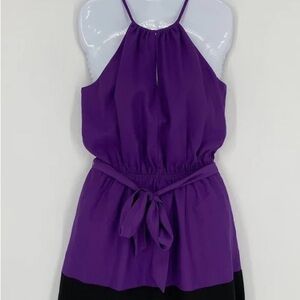 Stylish purple skirt with a black hem. Perfect for any occasion.Halter style with belt tie. Purple and block