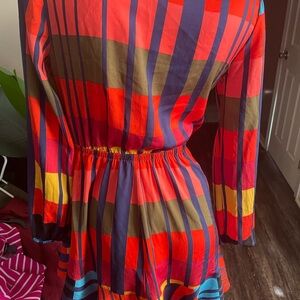 Express Color block elastic waist ruffle wrap style Dress Sz S