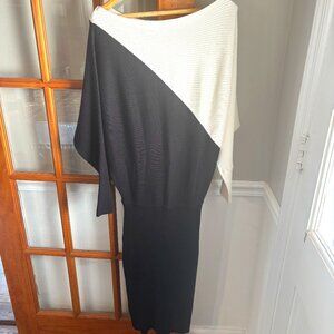 Express Color block Asymmetric Off The Shoulder Midi Sweater Dress