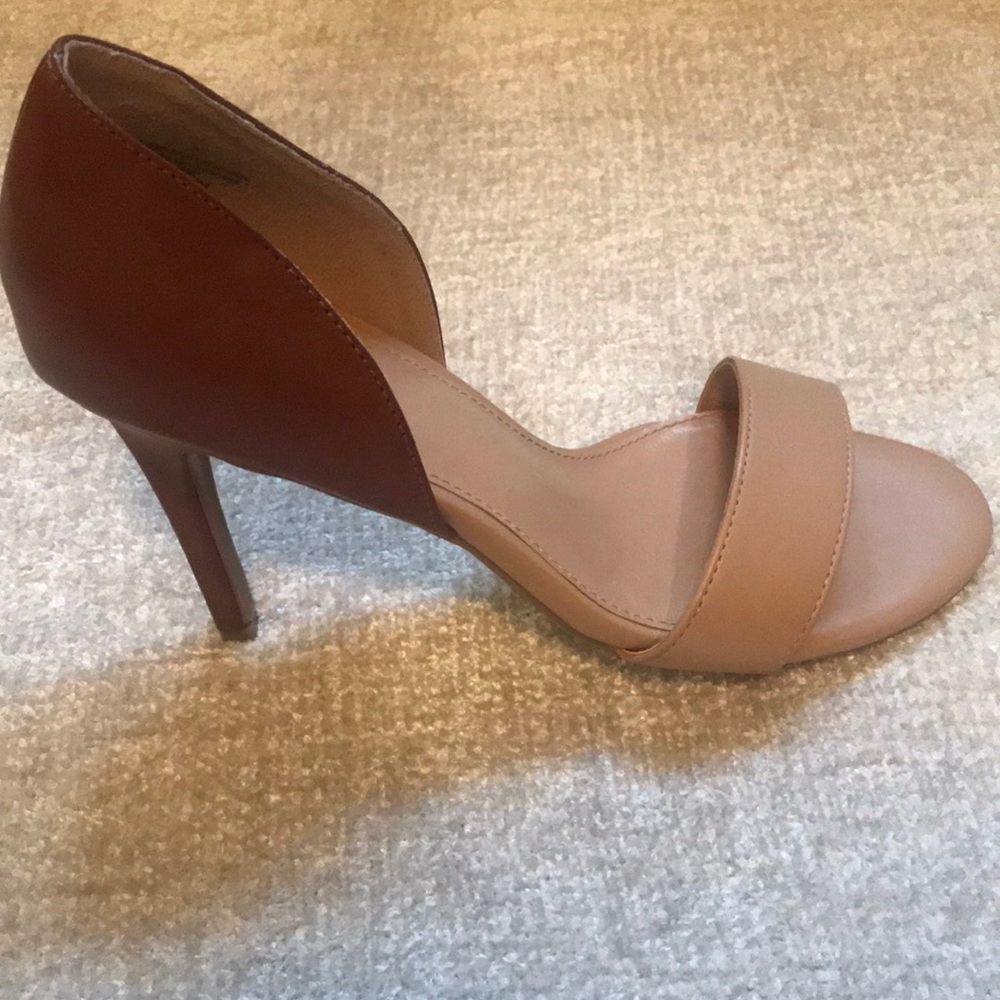Lightly worn, Express color block heeled sandals. Very comfy and great to dress up or down wear to work or with jeans :).