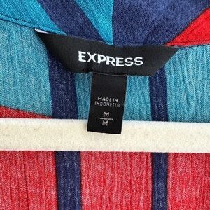 Express Colorblock Tie Waist Blouse, Red/Blue/Yellow/Orange, Size Medium