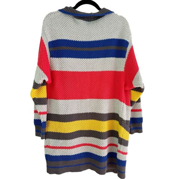 Express Colorful Striped Loose Knit Open Front Longline Cardigan Sweater Size XS