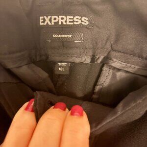 Classic and versatile black dress pants from Express. The Editor style is designed with a flattering mid-rise, straight leg, and tailored fit that works perfectly for the office or any professional setting. The "Long" length makes them great for taller frames or pairing with heels.
