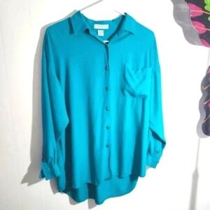 Express Compagnie Internacionale Aqua Blue Blouse Button-down Turquoise S