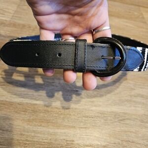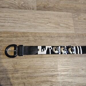 Express Compagnie Internationale Leather Corduroy Belt Size S Black White