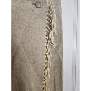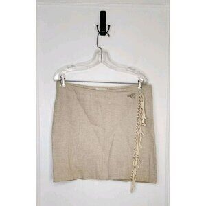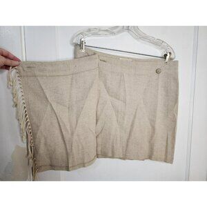 Express Compagnie Linen Cotton Wrap Skirt 13/14 Mini Neutral Beach Fringe 90s