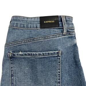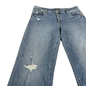Express Conscious Edit Jeans Size 12 Long Relaxed Straight Low Rise Button Fly Distressed