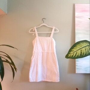 Express Coquette Girl Eyelet Mini Sundress, Fully Lined, Shoulder Straps Tie and Adjust, Back Zip, Feminine, Girly, Farmcore, Cottagecore, Girl Era, Classic, Coastal, Preppy. Tennis Prep