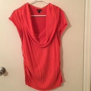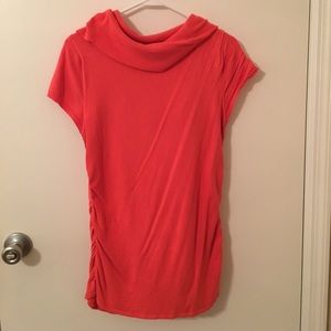 This short sleeve coral shirt is very comfortable and flattering. It's fitted but pleated through the torso, with a flowing neckline. It's been worn but it still in good condition. If you like this shirt, but don't like the price - make an offer! 🙂