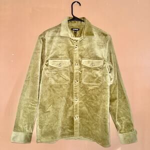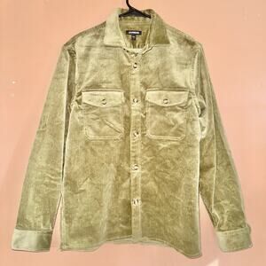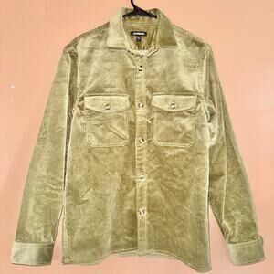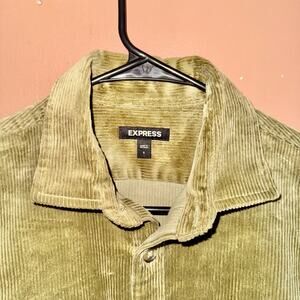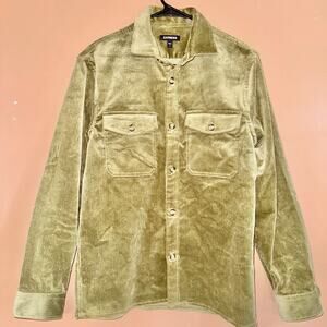 Elevate your casual style with this Express corduroy long-sleeve button-down flannel in olive green. Perfect for layering or wearing on its own, this heavy flannel offers both comfort and style.