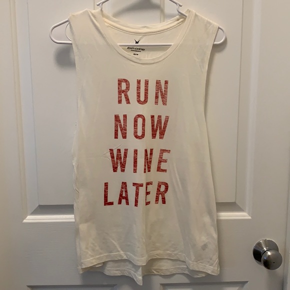 Express “Run Now Wine Later” cream and red Core Performance muscle tee. Size XS. Worn once. EUC.