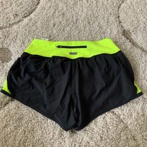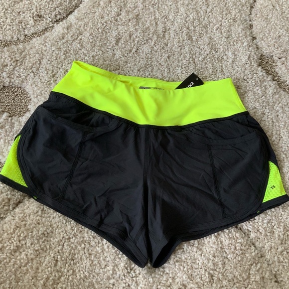 These shorts have pockets and built in brief. Zippered back pocket. Perfect for any exercise