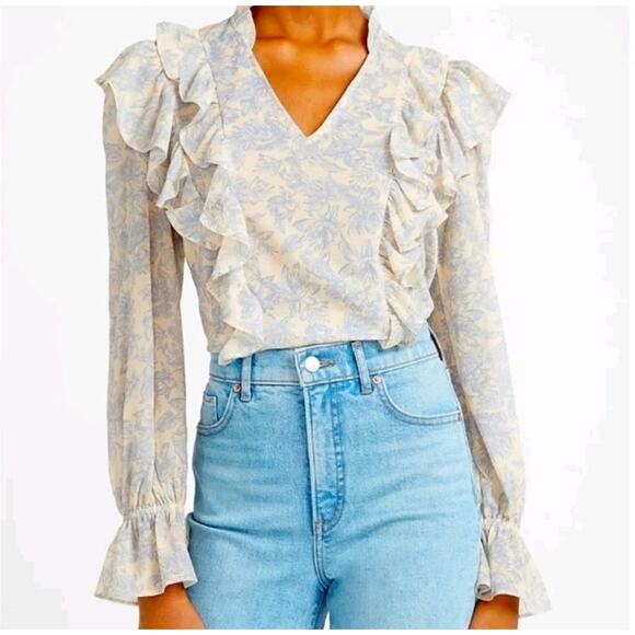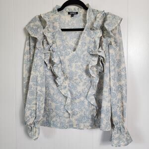 Express Cottagecore Boho Ruffle Poet Blouse Xs Blue Cream