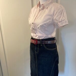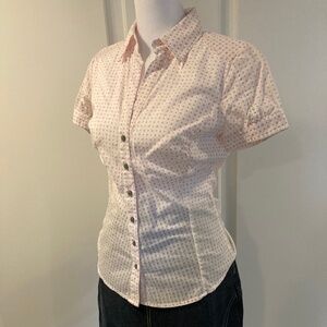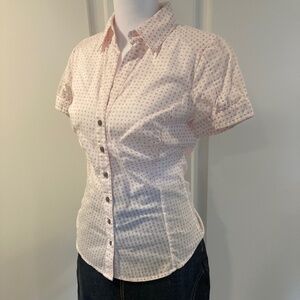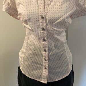 Form fitting Blouse. 65% Cotton, 30 % Nylon, 5 % Spandex. Gently worn. Smoke Free Home