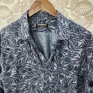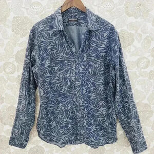 Express Cotton Button down Long sleeve Men's L Leaves Printed All over print