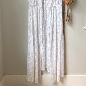 Brand new with tags white Express Cover Up Maxi--a floral pattern with metallic thread throughout. Paid $88