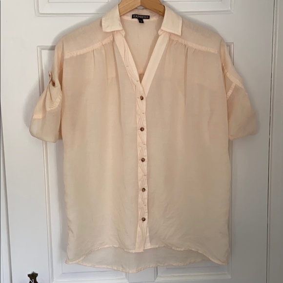 Elegant cream blouse with button-up front. Short sleeves with button detail. Lightweight and stylish.