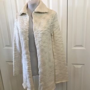 Soft Express Cream Cardigan Duster Sweater Open Front Sight Metallic Thread running through sz XS