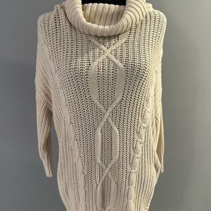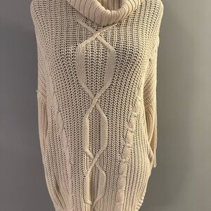 Embrace the chill with the Express Cream Cowl Neck Sweater, featuring a luxurious cable knit design that adds texture and elegance. This sweater is crafted from a thick, warm yarn, ensuring comfort and style during the colder months. The sophisticated cowl neckline offers a cozy touch, making it a perfect choice for casual outings or relaxed evenings.