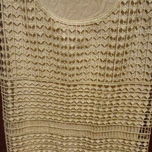 Light and breezy with a boho vibe! This Express cream tank features a crochet knit overlay with a soft lining underneath. Scoop neck and relaxed fit—perfect for summer festivals, beach days, or layering under a denim jacket.