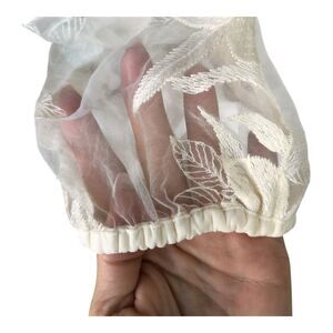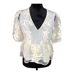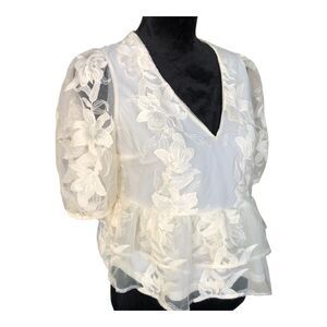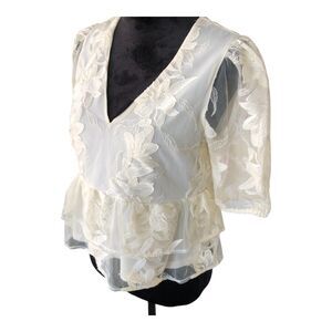Express Cream Embroidered Cottagecore Lace Puff Sleeve Tiered Ruffle Shirt Sz S