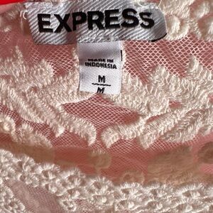 Feminine, flattering, and effortlessly stylish — this Express lace top is a wardrobe must-have! With a 18.5” flat lay waist and 25” length, it offers a comfortable fit and an elegant silhouette. Dress it up with slacks or a pencil skirt, or keep it casual with jeans — the styling options are endless.