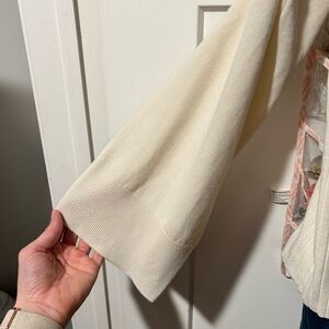 This elegant cream off-shoulder sweater is perfect for any occasion. Its soft fabric and stylish design offer both comfort and sophistication.