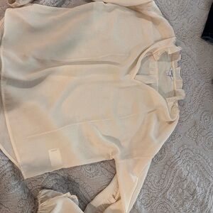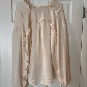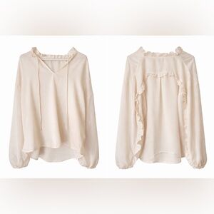 Chic blouse with ruffle details. Soft cream color. Ideal for versatile styling.