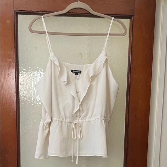 Express Cream Ruffle Button-Down Blouse
