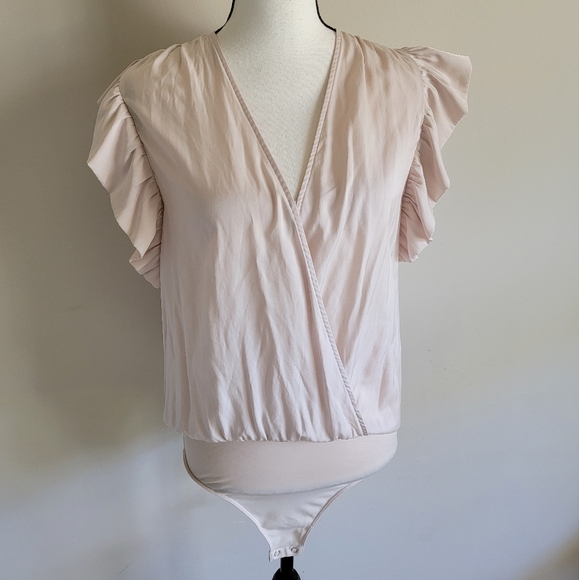 Elegant bodysuit with ruffle sleeves. Soft cream color. Perfect for layering or wearing alone.