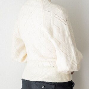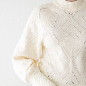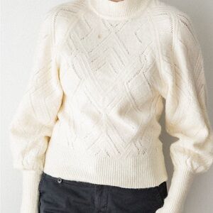Chic cream turtleneck sweater by Express. Features a textured knit design. Ideal for layering and warmth.