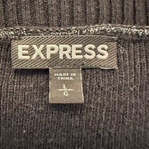 Express Crew Neck Rib-Knit Long Sleeve Pullover Sweater Black Large