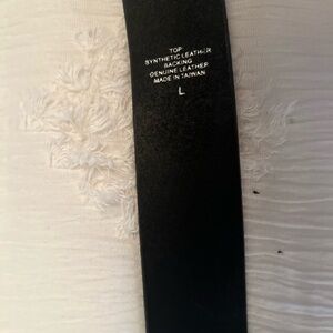 Great condition- two small scuffs on the end of the belt. Measurements in photo. Black with iron buckle.