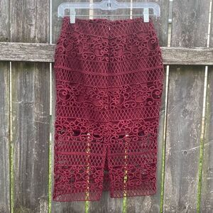 Express Crochet Lace Wine Red Pencil Skirt NWT | 0