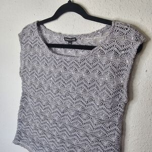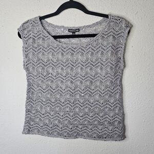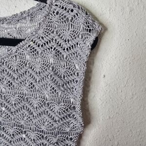 Express Crochet Vest Popover Womens XS Sleeveless Open Knit Sequin Sparkle Boxy