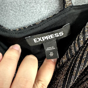 Express Crop Top Womens XS Black Shimmer Metallic Strappy Glam Party Boho Y2K