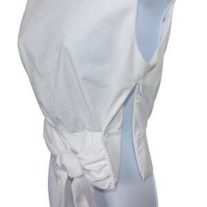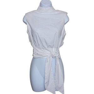 Express Cropped Tie Front Padded Shoulder Top (White) Size S