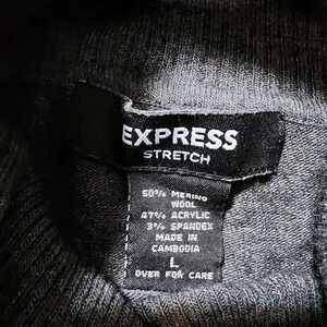Elevate your wardrobe with this stylish Express sweater. Featuring a flattering turtleneck neckline, this sweater is perfect for any occasion, whether you're traveling, going to a party, or just dressing casually. With a comfortable and oversized fit, this sweater is made from a combination of polyester, spandex, and merino fabrics, ensuring that it is both soft and durable.
