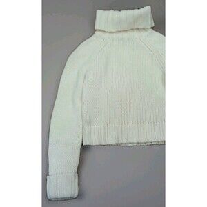 Express Cropped Turtleneck Sweater Medium Y2K Ivory Knit Bobble Chunky Soft Girl