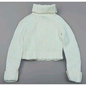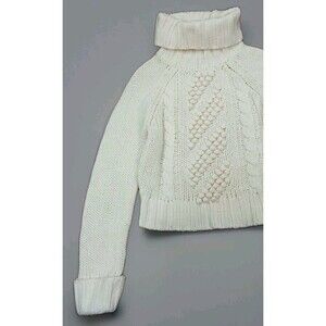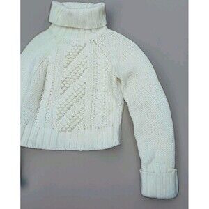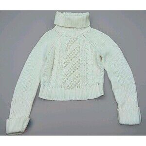 Step into your soft girl winter era ️ with this ultra-cozy Express cropped turtleneck sweater, size Medium. Features a chunky knit cable design with textured bobble details, a fold-over turtleneck, and long sleeves with fold cuffs totally giving Y2K ski lodge / Pinterest aesthetic vibes.