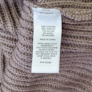 Slightly hi-lo curved hem. Pretty mocha/taupe color. 63% Cotton, 26% Acrylic, 17% Nylon, 2% Wool, 2% Mohair. Size XS.