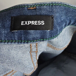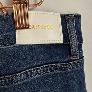 Express Curvy High Waisted Dark Wash Ripped Flare Stretch Denim Jeans Size 12